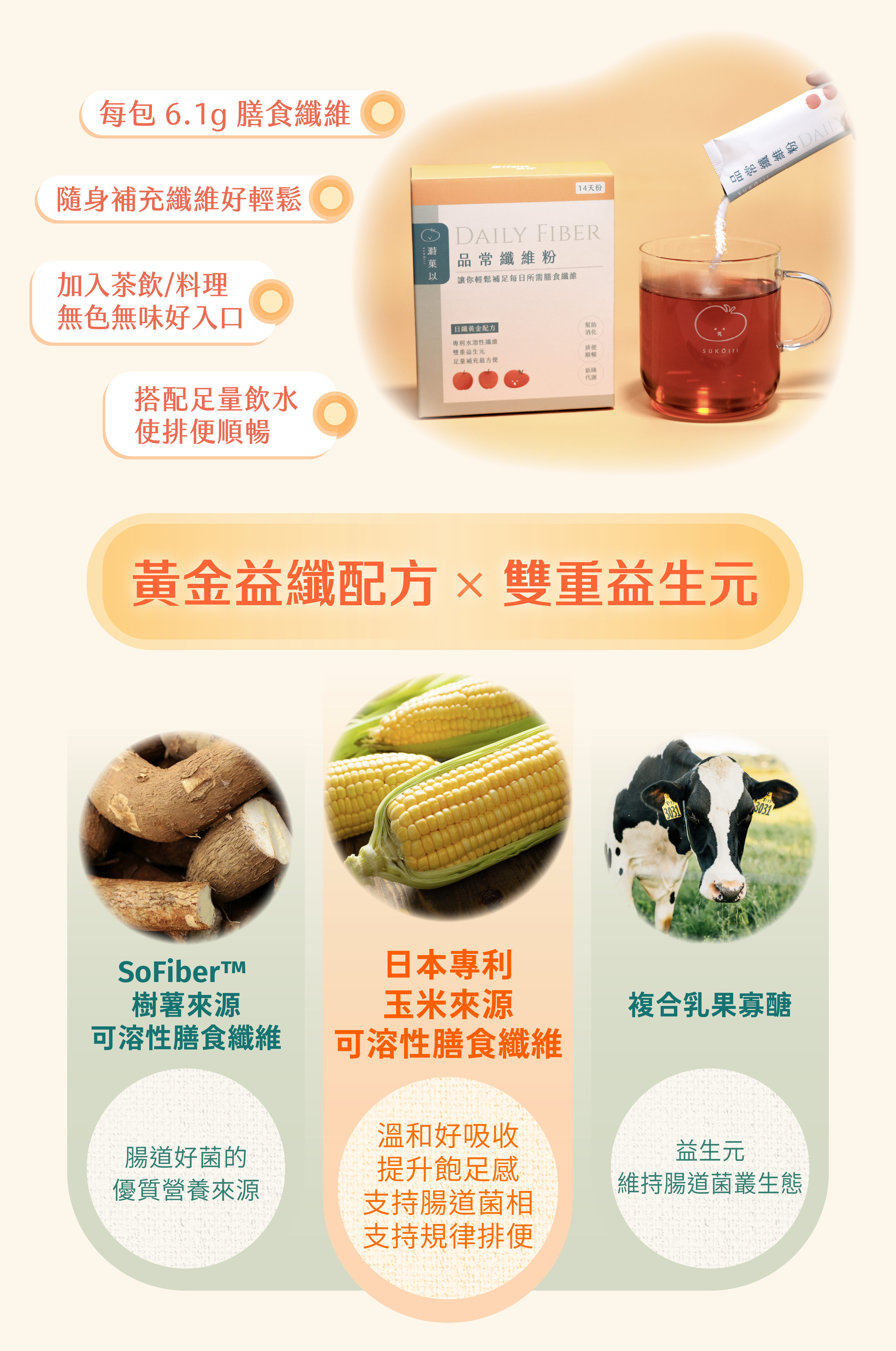 ✔ 雙重益生元:給好菌最好的食物來源